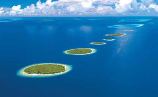 1 As ilhas do atol de Baa, no arquipélago das Maldivas. Elas estão seriamente ameaçadas pela subida do nível dos mares. Segundo estimativas, até o final do século 21 o nível dos oceanos aumentará entre 7 centímetros e 1 metro. O problema é enorme, já que a major parte das ilhas Maldivas está a menos de 1 metro do nível do mar; o ponto mais alto está a 2,4 metros, na ilha Villingili, no atol de Seenu. Todo esse arquipélago de 1190 ilhas corre o risco de desaparecer. Foto: Sakis Papadopoulos.