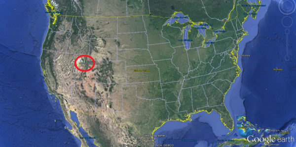 Mapa mostrando, no círculo vermelho, a Área 51