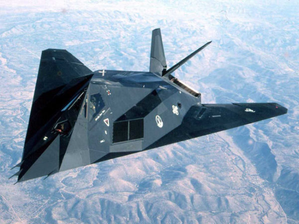 Um nighthawk (falcão da noite), avião militar norte-americano invisível aos radares, testado na base aérea da Área 51, no Deserto de Nevada