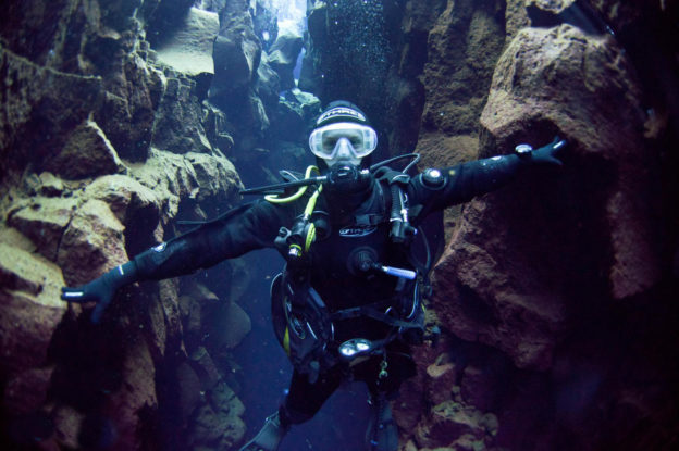 Mergulhador e fotógrafo de situações extremas, o britânico Alexander Mustard registrou o mergulho que ele e outros colegas fizeram na fenda entre as placas tectônicas da América do Norte e da Eurásia. A aventura para conhecer a “fronteira” entre as duas placas ocorreu no Parque Nacional Thingvellir, na Islândia. A paisagem submersa do parque é cheia de vales, falhas e fontes de lava, formados pelo afastamento gradual entre as duas placas, que se distanciam cerca de 2,5 centímetros uma da outra a cada ano.