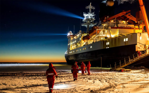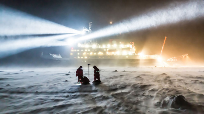Levando a bordo uma verdadeira cidade da ciência, o Polarstern, navio quebra-gelo alemão está navegando praticamente à deriva, entre os gelos do Oceano Ártico, na altura do 85° paralelo Norte. A viagem acontece na escuridão da noite polar: nesta altura do outono no Hemisfério Norte, perto do polo o Sol já não surge acima do horizonte.