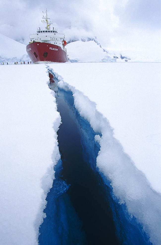Na banquisa podem se abrir fendas que se alargam, tornando-se verdadeiras rupturas.