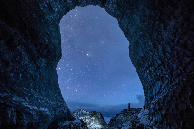 Uma faixa do céu tirada durante uma exploração do glaciar Vatnajökull, na Islândia. O fotógrafo declara ter pensado em transmitir com ela a profunda sensação de paz e grandiosidade que se percebe naquele lugar. Fotógrafo: Dave Brosha.