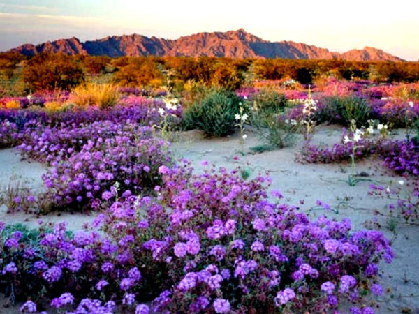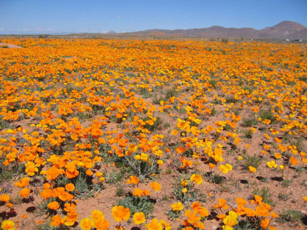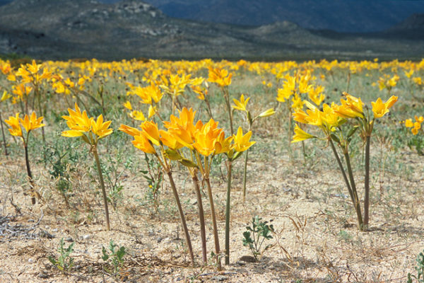 O mérito pertence às precipitações do início da primavera, que periodicamente se manifestam com excepcional abundância e permitem, naquelas raras ocasiões, que as sementes de mais de 200 espécies de flores desabrochem ao mesmo tempo, como se tocadas por alguma varinha mágica.