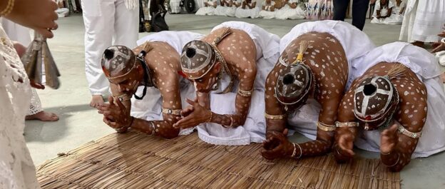 “Por meio dessas imagens, procurei transmitir a emoção atávica que senti quando procurávamos chegar à comunidade quilombola de Santa Rosa dos Pretos (MA) e fomos guiados pelos sons dos atabaques. Cheguei, havia uma grande roda e as pessoas dançavam. Entrei nela, por puro impulso, e quase imediatamente me senti um deles”, afirma Scipioni.