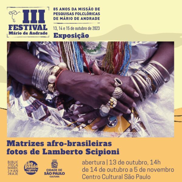 Matrizes afro-brasileiras, exposição do fotógrafo Lamberto Scipioni, celebra a identidade nacional no III Festival Mario de Andrade. A mostra é gratuita e acontece de 13 de outubro a 5 de novembro no Centro Cultural São Paulo.