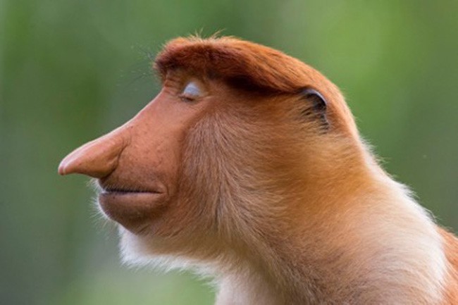 8 Olha a pose. Vencedor na categoria Retratos de Animais. Um jovem macaco-tromba inclina ligeiramente a cabeça e fecha os olhos. Pálpebras inesperadas de um azul claro agora complementam seu cabelo ruivo imaculadamente penteado. Ele posa por alguns segundos como se estivesse meditando. Esse primata é um visitante selvagem durante a estação de alimentação no Labuk Bay Proboscis Monkey Sanctuary, em Sabah, Bornéo. Foto: Mogens Trolle.