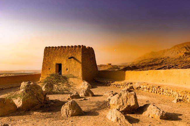 O Forte Dhayah, em Ras Al Khaimah, nos Emirados Árabes Unidos, uma das áreas onde foram registradas temperaturas recorde, tornando a zona totalmente inabitável.