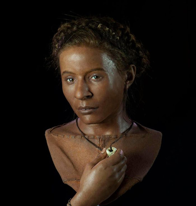 Essa reconstrução é a de uma mulher jovem da Idade da Pedra que morreu cerca de 5.500 anos atrás na região de Brighton, no que é hoje o Reino Unido. Ela foi enterrada com um bebê ao seu peito, de forma que os cientistas desconfiam que a causa de sua morte foi alguma complicação no parto.