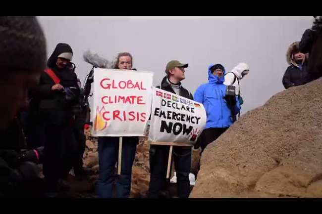 Durante a homenagem ao glaciar desaparecido, ambientalistas aproveitam para alertar sobre a crise climática mundial.