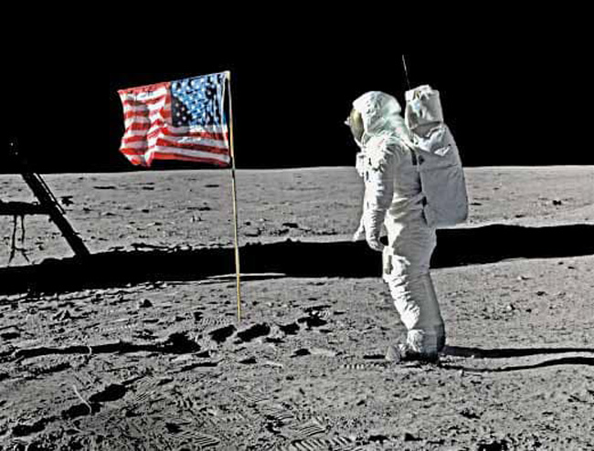 A nova fronteira: o astronauta Buzz Aldrin (Apollo 11) saúda a bandeira norte-americana plantada no solo lunar, em 21 de julho 1969.