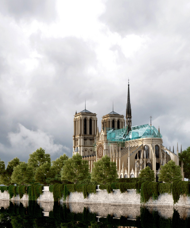 Depois do incêndio de 15 de abril 2019, que destruiu o teto medieval e a agulha do século 19 projetada pelo arquiteto Eugène Viollet-le-Duc, o presidente Emmanuel Macron anunciou um concurso internacional de arquitetura para a recuperação da catedral metropolitana de Paris, declarando não ter preconceitos em relação a qualquer ideia arquitetônica contemporânea, até mesmo as mais ousadas.