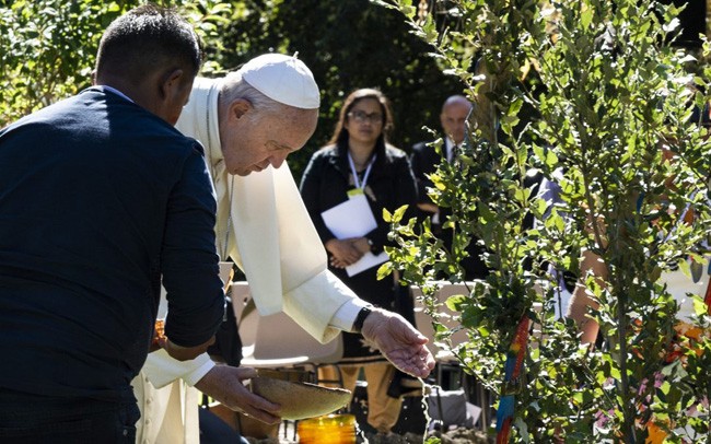 Então, a minha primeira sugestão é promover, em todos os níveis, uma educação voltada ao cuidado da nossa casa comum, desenvolvendo o entendimento de que os problemas ambientais estão vinculados às necessidades humanas. Nós devemos compreender isso desde o início: problemas ambientais estão ligados às necessidades humanas. Uma educação baseada em dados científicos e em uma abordagem ética. Isso é importante. Ambos são importantes. Sou encorajado pelo fato de que muitos jovens já demonstram uma nova consciência ecológica e social, e muitos deles lutam generosamente pela defesa do meio ambiente e da justiça.