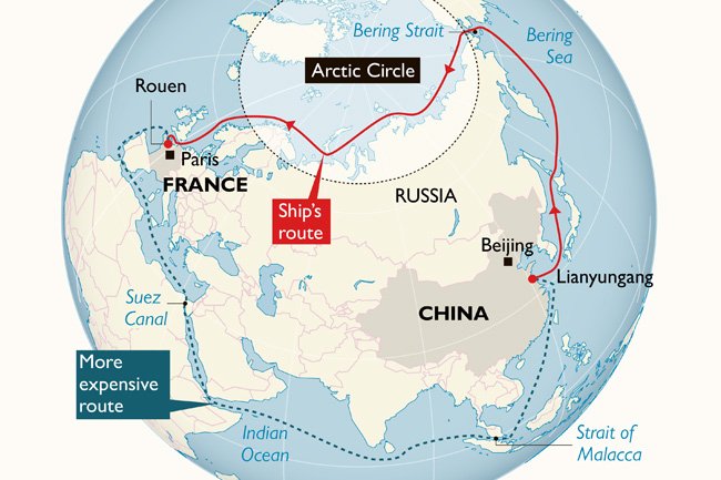 A nova rota permanece aberta 4 meses ao ano e pode representar enorme economia para os transportes de carga da China e da Rússia.