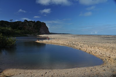 Quem quiser explicar esse grude que Cumuru – como a chamam os íntimos – impõe, não terá de investigar muito. Basta caminhar pelas praias do lugar, sem lenço nem documento, junto às ondas que quebram sobre as areias branquíssimas, ou no alto das falésias de arenito que as acompanham, todas elas recobertas de florestas de coqueiros. Se entregar à preguiça mais venial numa das redes que as pousadas à beira mar oferecem. Partir para um outro pecado, a gula, num dos restaurantes especializados em frutos do mar. Visitar logradouros de grande charme histórico, como a barra do Rio Cahy, logo ao lado. Muitos historiadores acreditam que foi bem ali que Nicolau Coelho, um dos almirantes de Cabral, travou o primeiro contato entre portugueses e índios. Hipótese reforçada por trechos da carta de Pero Vaz de Caminha e pela visão que se tem do Monte Pascoal, quando se está no mar, em frente ao Cahy.