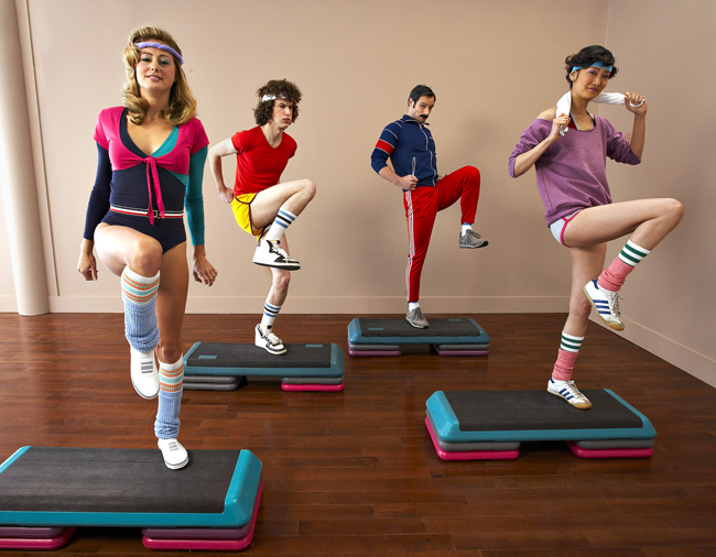 People in 1970´s Clothing Exercising