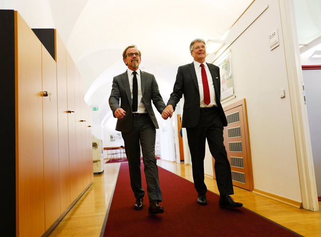 Vários políticos holandeses se juntaram aos manifestantes, inclusive Alexander Pechtold, líder do Partido Democrats D66, e seu porta-voz financeiro Wouter Koolmees. Ambos chegaram de mãos dadas ao Parlamento na segunda feira para participar do importante evento coalition talks, na capital Haia.