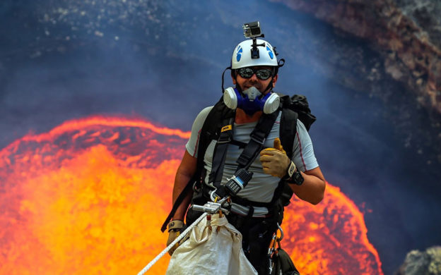 Chegaram desse modo até a borda de um lago de lava do tamanho de dois campos de futebol! “Descer tão fundo na cratera de um vulcão ativo e sentir o calor que a lava desprende é mesmo uma experiência fenomenal”, relatou Horsly ao fim da expedição.