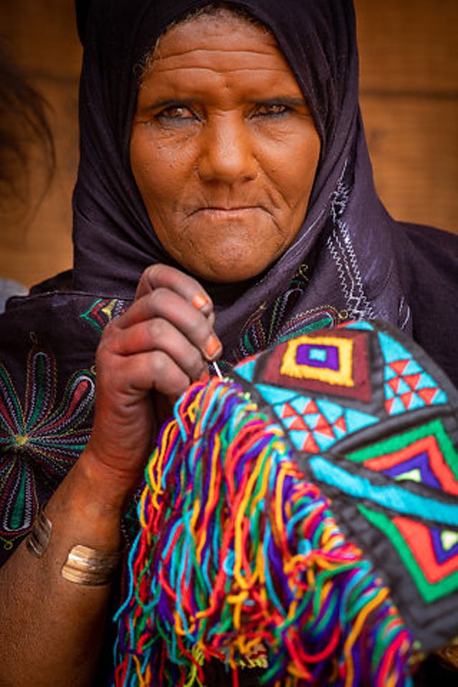 Na Argélia, a mulher tuaregue não usa véu – é o homem que o usa. Ela tem total liberdade para escolher seu marido. Ela conhece o alfabeto tifinague, os contos e as lendas, e os ensina a seus filhos. A tenda e seu conteúdo pertencem a ela. Ela gerencia e supervisiona o acampamento quando o homem está ausente, e participa de todas as tomadas de decisão, mesmo quando ele está presente. Ela se envolve em todos os assuntos sociais, culturais e econômicos. É por meio da linhagem materna que todos os poderes aristocráticos são transmitidos. No entanto, as políticas de sedentarização das décadas de 1970 e 1980, as reiteradas secas e os atrativos da modernidade para os jovens comprometeram esse modo de vida. No caso de um rompimento ou morte, a Targuia – uma mulher tuaregue – deixa o acampamento nômade com seus filhos, seu dote, a tenda e até os camelos que seu pai lhe deixou.