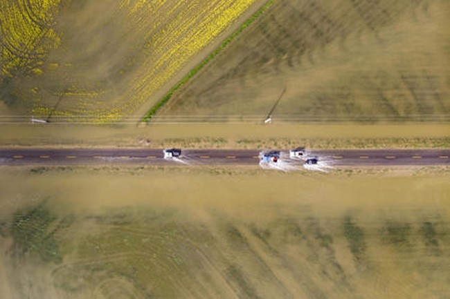 A foto de Stu Short retrata caçadores de tempestades que fogem de uma supercélula aterrorizante, uma tempestade poderosa e perigosa que atinge as ruas do Novo México. Foto: Stu Short.