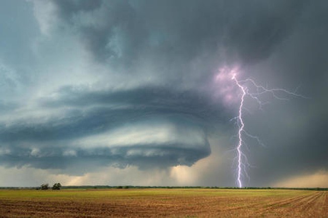 Um fenômeno de tempestade que causa calafrios: um imponente sistema de nuvens com fortes correntes ascendentes eleva o ar para cima. Isso geralmente acontece em Oklahoma, nos Estados Unidos, e Dennis Oswald capturou esse fenômeno. Foto Dennis Oswald.