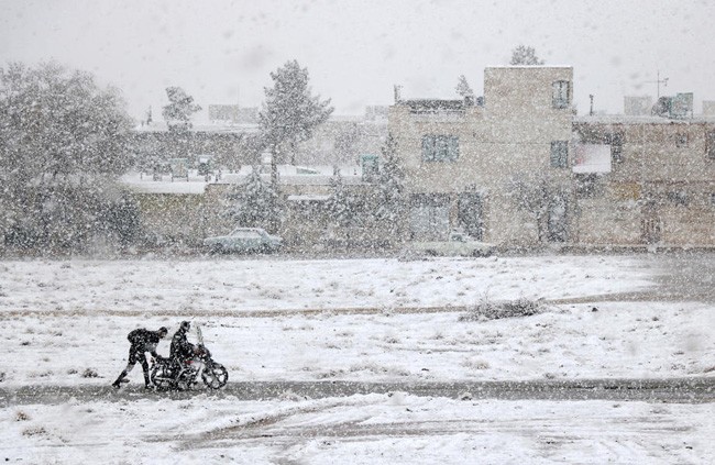 Ali Bagheri ocupa o segundo lugar na categoria abaixo dos 17 anos, graças a esta fotografia que mostra dois motociclistas lutando com os eventos inesperados causados ??pela neve no Irã. Foto: Ali Bagheri.
