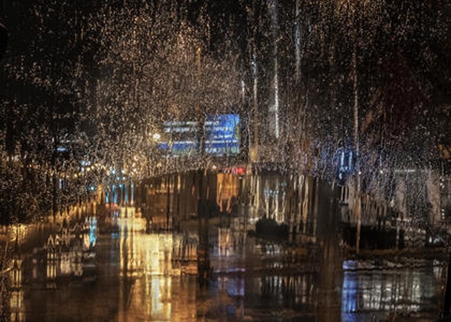 Sob uma chuva muito forte, as barreiras do rio Tâmisa brilham na foto de Brian Michael Denton. Foto: Brian Michael Denton.