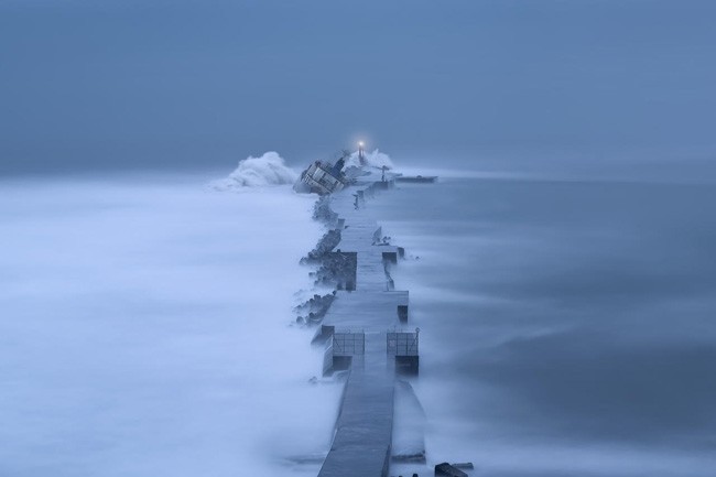 O fotógrafo Jay Birmingham captura a fúria das ondas que atingem o farol de Portcawl, no País de Gales. Foto Jay Birmingham.