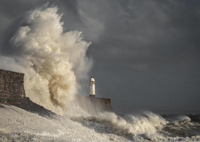 Owen Humphreys captura o momento em que uma onda espetacular bate no píer em Tynemouth, Inglaterra. Foto: Owen Humphreys.