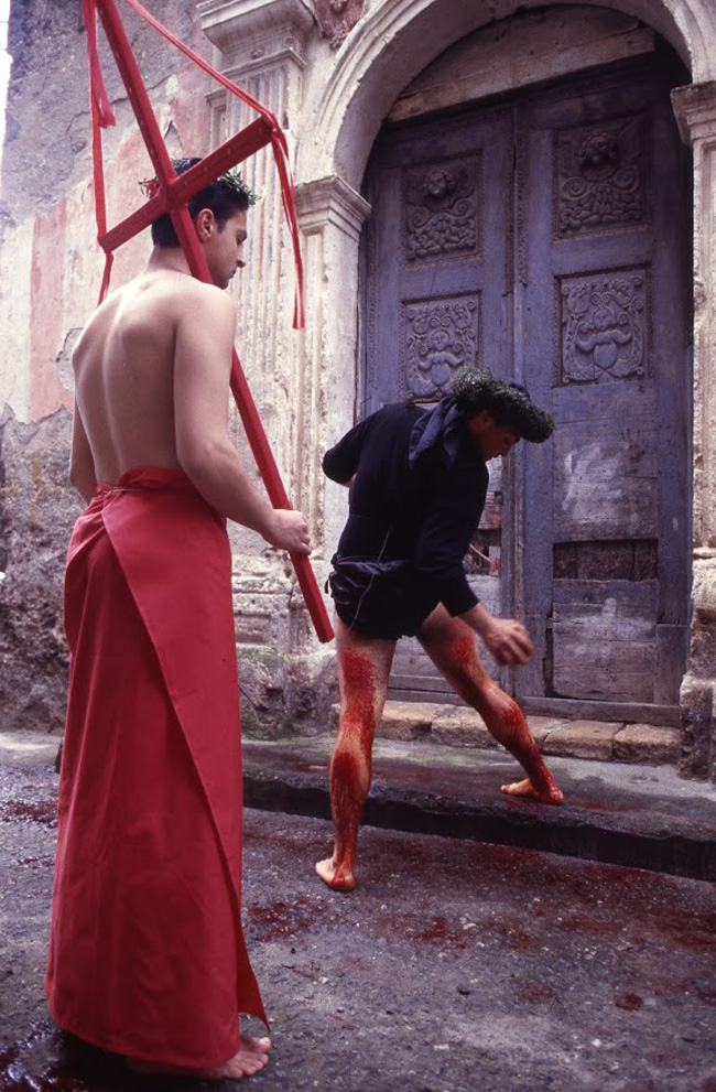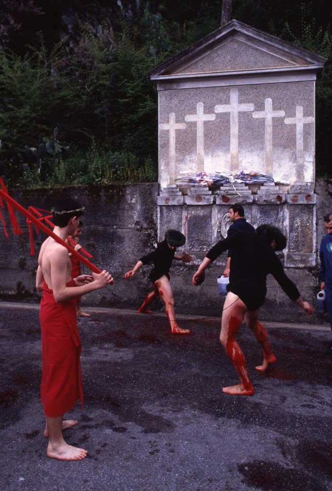 Há também os ritos religiosos de autoflagelação dos “spinati” em Palmi, ou o dos “Vattenti”, em Guardia Sanframondi, nos quais centenas de homens golpeiam seus corpos com instrumentos perfurantes derramando muito sangue.