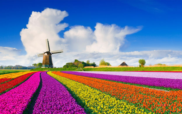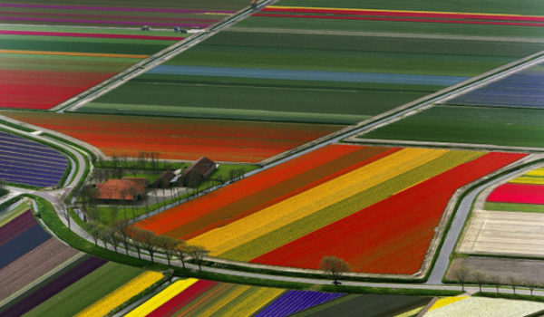 Um campo de tulipas na Holanda. Muitas plantações precisam ser protegidas contra a infestação de ervas com o uso de herbicidas.