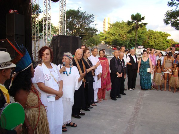 Em Campina Grande, Paraíba, no entardecer de domingo, 14 de fevereiro, na pracinha em frente ao auditório onde se realizava o 19° Encontro da Nova Consciência, vários representantes de religiões organizadas compunham um semicírculo no momento em que, depois da passeata pela paz, se realizava o tradicional ato macroecumênico. No semicírculo estava o casal de monges budistas Ricardo Gonçalves e sua esposa Ivonete, com seus magníficos quimonos negros japoneses; estava o monge beneditino Marcelo Barros, todo de branco; a mãe-de-santo de umbanda Rita de Cássia S. Cordeiro, de São Paulo; a iraniana Simin Rabbani, da Fé Baha’i; o xeique Muhammad Ragip, da Ordem Sufi Halveti Jehahi; Fernando Ribeiro, do Santo Daime; o monge Chandra Murkha, do movimento Hare Krishna; os xamãs Marcos Ninguém e Yatamalo (a psicóloga paraibana Marise Dantas); o cigano Virgílio Vassalo, da tradição cigana; os sacerdotes wiccanos Claudiney Prieto e a norte-americana Traci Regula; o monge zen Handa Jishô; a índia Potiguara, apresentada como única mulher pagé do Brasil; e vários outros representantes de comunidades religiosas instaladas no Brasil.