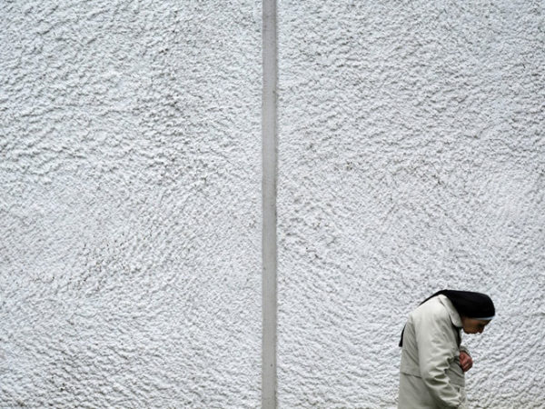 25 Estranho percurso – Finalista Categoria Pessoas. Uma religiosa caminha lentamente em direção à Igreja de Notre Dame du Hau, em Ronchamp. França. Foto: Folco Salani
