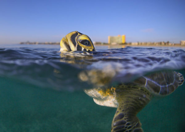 26 Futuro Sustentável – Finalista Categoria Viagens Sustentáveis. Uma tartaruga verde (Chelonia mydas) nas águas da Flórida. Foto: Ben Hicks