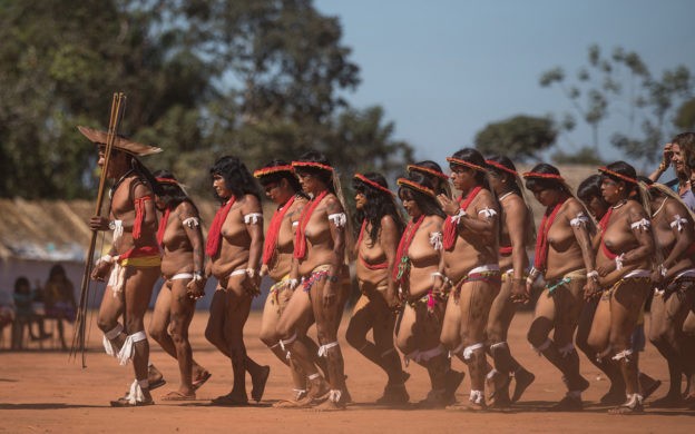 O Movimento das Mulheres Yarang, do Território Indígena do Xingu (MT), festeja 10 anos de trabalho coletando sementes para a restauração das florestas nas bacias dos Rios Xingu e Araguaia. Na foto de abertura, um ritual do povo Ikpeng: A entrada das mulheres Ikpeng na Casa dos Homens.