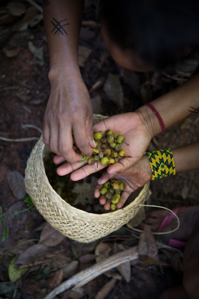 “As árvores e as sementes têm espírito. Quando um grupo de coletoras vai trabalhar, eu vou como guardião para conversar com os espíritos para dizer que não queremos fazer mal a eles”, detalha o pajé. “Assim, os espíritos permitem que a gente trabalhe com eles. Pedimos permissão. Por isso, as mulheres que trabalham na coleta não ficam doentes”, explica.