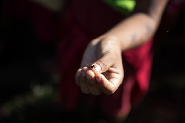 Meio caminho andado e uma criança aponta para um pequeno buraco no chão da trilha. Em um instante, ela traz, grande e potente, uma formiga cortadeira que parece entorpecida entre seus dedos. Na língua Ikpeng, uma Yarang.