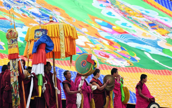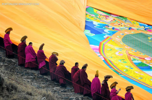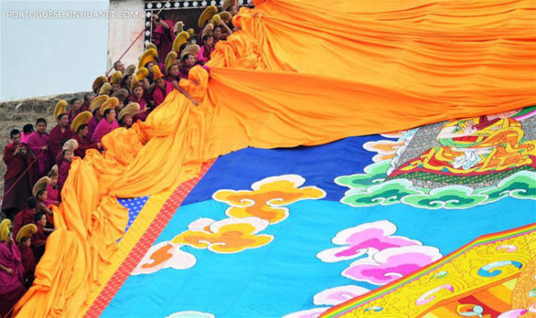A arte sagrada da thangka. Cerimônia do “Buda ao sol” na China