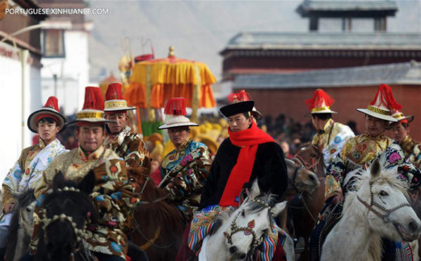 Populares chineses assistem ao ritual do Buda ao Sol, no Mosteiro de Labrang.