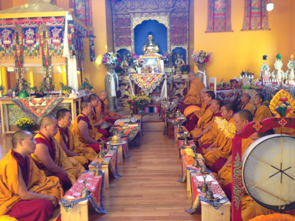 Por volta das 9h, budistas e turistas se reuniram na praça em frente ao salão de escrituras do mosteiro. Às 10h, um enorme rolo de thangka com a imagem do Buda foi levado para fora do salão por lamas e desenrolado sobre a encosta de um monte.