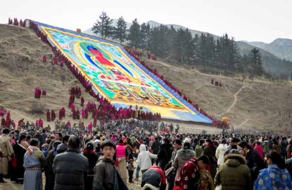 A exibição anual de pinturas do Buda feitas no estilo thangka, um tipo de pintura originária do Tibete, é feita no monastério de Labrang e é a maneira tradicional do budismo tibetano para rezar por um bom ano.