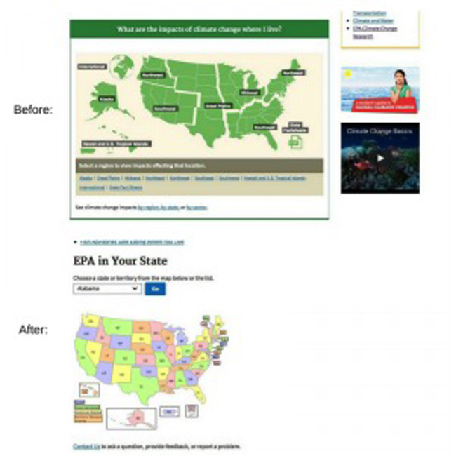Algumas páginas foram completamente removidas, como é o caso da área dedicada aos estudantes. Uma outra importante seção foi completamente desfigurada: a “Climate and Energy Resources for State, Local and Tribal Governments”, que na sua nova versão perdeu o “Climate” junto a um número gigantesco de documentos e de dados científicos.