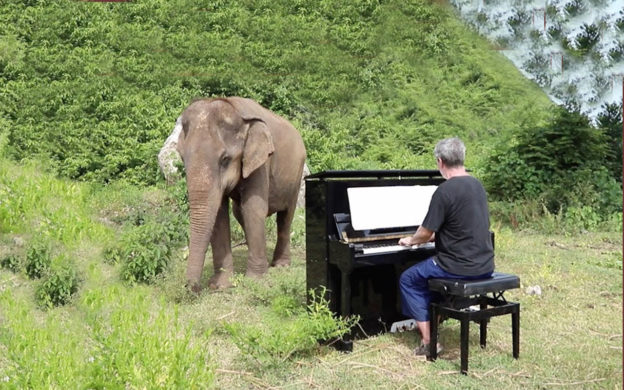 Lam Duan, em tailandês, significa “Árvore com flores amarelas”. É o nome de uma dócil elefanta de 62 anos, hoje completamente cega, que vive no santuário Elephants World, na Tailândia (http://www.elephantsworld.org). Lam Duan teve uma vida difícil e muito sofrida de animal-de-carga, passando quase toda a existência a carregar enormes troncos de madeira para seus donos. Mesmo assim, essa vovó elefanta não perdeu sua sensibilidade. Veja (e ouça) como ela – famosa por não parar quieta e mover-se o tempo todo – se aquieta e se acomoda ao som do Prelúdio para o Cravo Bem Temperado, de Bach, seguido por composições de Chopin, Satie e Schubert, executadas ao piano especialmente para ela.