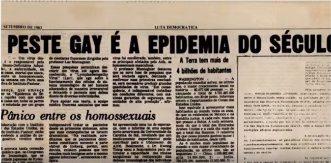 Manchete do jornal Luta Democrática na época do surgimento da epidemia mundial de Aids.