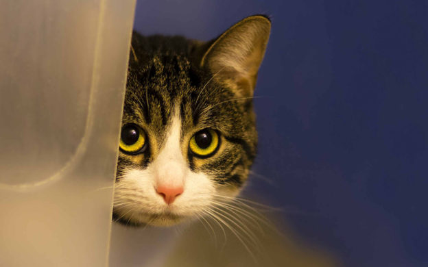 Mas o gato se sai bem melhor que o cão no teste de deslocamento oculto, no qual é avaliada a capacidade de prever onde um objeto em movimento uniforme aparecerá após passar por trás de uma barreira. Isso é feito pela observação da direção do olhar do animal enquanto uma bolinha passa por trás de uma caixa de papelão, por exemplo. A maioria dos gatos é aprovada no teste: consegue prever o contínuo deslocamento do objeto, pois olha exatamente para o ponto onde a bolinha irá aparecer. Já a maioria dos cães fica olhando para o local onde a bolinha desapareceu…
