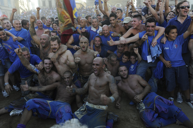 O Pálio de Siena, corrida equestre de origens medievais, mostra a disputa entre os diferentes bairros da cidade – cada um deles representado não pelo cavaleiro, e sim pelo cavalo.