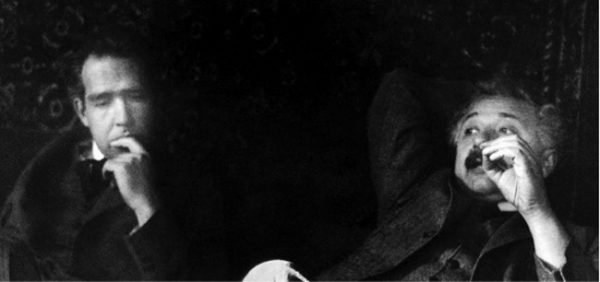 Niels Bohr e Albert Einstein, dois pais da teoria. Foi durante uma das discussões que eles mantiveram a respeito do significado físico da mecânica quântica que Einstein pronunciou a célebre frase: “Deus não joga dados”. Bohr rebateu brilhantemente todas as críticas de Einstein, mas este nunca se convenceu da natureza probabilística do mundo quântico.
