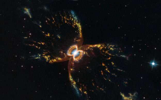 O Telescópio Espacial Hubble completa 29 anos de existência. Desde seu lançamento, em abril de 1990, ele nos proporcionou centenas de milhares de fotos extraordinárias, abrindo as portas para uma percepção do espaço exterior até então completamente desconhecida. A Nasa escolheu estas imagens para fazer um painel comemorativo. Na imagem de abertura, a Nebulosa do Caranguejo Meridional: a estranha forma de ampulheta é provavelmente o resultado da interação de uma estrela gigante vermelha e uma anã branca.