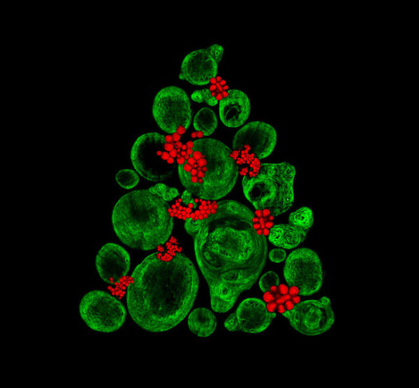 3o Lugar – Uma colônia de Volvox (uma alga unicelular) está liberando suas filhas. Foto: Jean-Marc Babalian