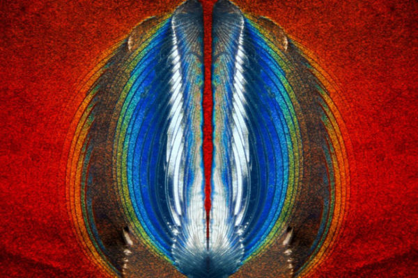16o Lugar – Uma pluma do pássaro chapim-real (Parus major) que resplende como um arco-íris. Foto: Marek Mis